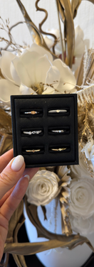 Padomājiet, kā gredzens saderēs ar ikdienas rotām un laulību gredzenu – vai vēlaties, lai tas harmoniski papildina jau esošos gredzenus? Ir iespējams izveidot saskaņotu, ērtu komplektu!